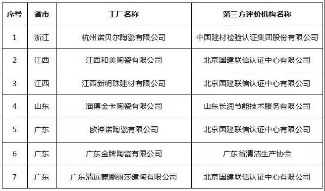 据介绍,工信部绿色制造名单的认定,是基于基础设施、管理体系、能源与资源投入、产品、环境排放、环境绩效等系列综合评价指标。在第四批绿色制造名单中,陶瓷企业相关的有7家企业,分别是诺贝尔、新明珠、蒙娜丽莎、欧神诺、金牌、江西和美、淄博金卡七家陶企上榜。
