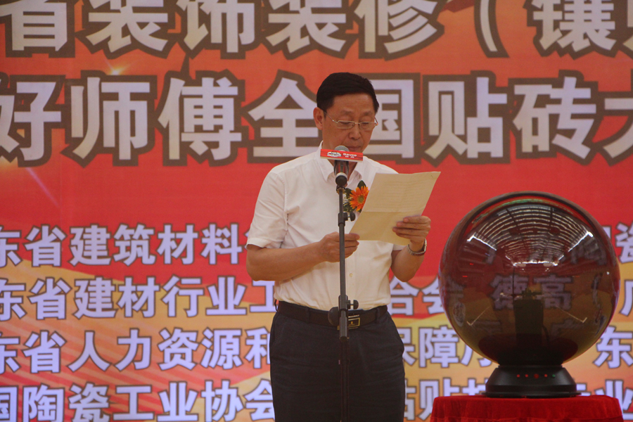 竞赛组委会副主任、省建材协会协会常务副会长、广东陶瓷协会会长陈环在致辞中表示,举办全省性职业技能竞赛,是贯彻落实省委、省政府培养高技能人才战略,加快技能人才特别是高技能人才队伍建设,弘扬工匠精神的重要举措。广东省装饰装修(镶贴)工职业技能竞赛通过瓷砖镶贴公益培训和现场技能比拼等形式,让越来越多的消费者、瓷砖厂商以及贴砖工人了解和掌握到新的贴砖材料和铺贴技术,让广大消费者在享受瓷砖美丽的装饰效果的同时确保贴砖的安全性与耐用性。大赛将成为对整个瓷砖行业的企业、商家和消费者非常有意义的宣导,将引导我国瓷砖铺贴方式向规范、高效、安全、耐用的方向转型升级。