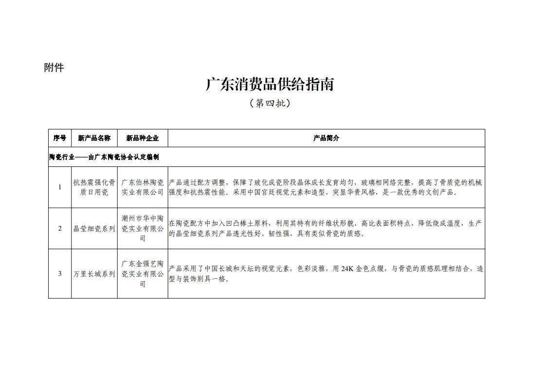 日前,广东省工业和信息化厅公布第四批广东消费品供给指南,经我协会认定编制、推荐,33个陶瓷产品入选。