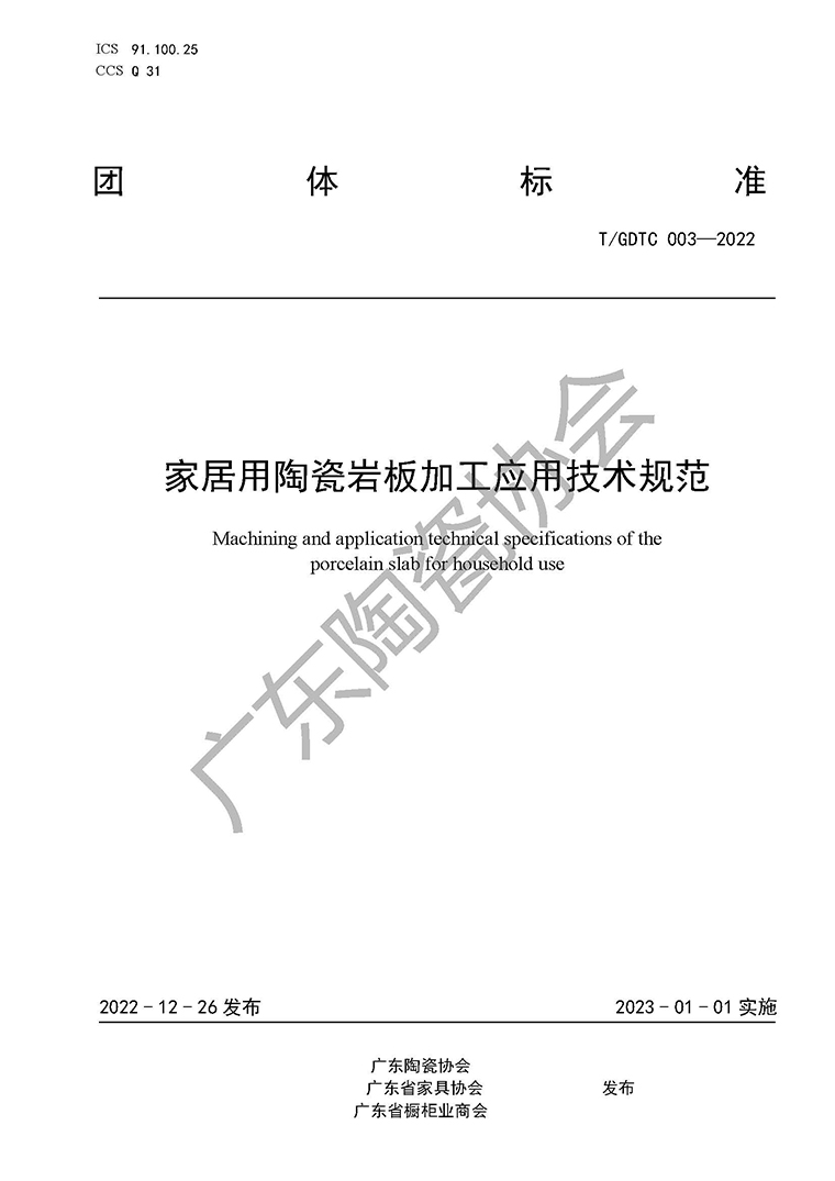 家居用陶瓷岩板加工应用技术规范T/GDTC 0032022)团体标准已通过技术审查,现批准发布,202311日起实施。