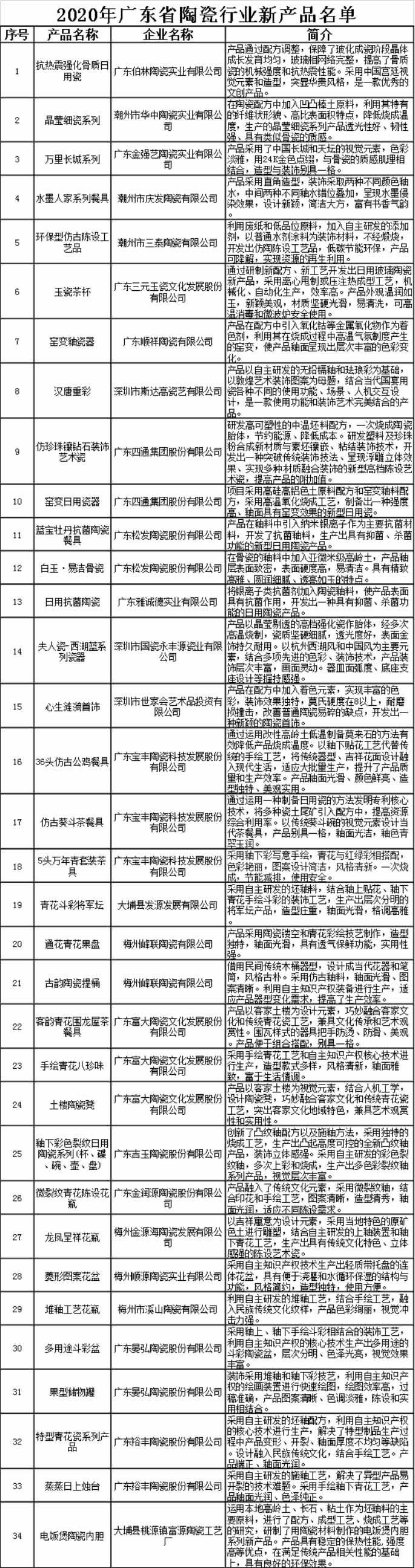 关于2020年广东省陶瓷行业新产品认定结果的公示