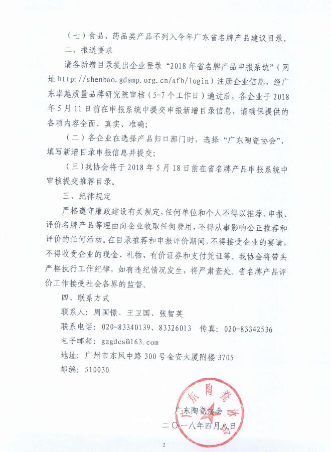 (三)我协会将于2018年5月18日前在省名牌产品申报系统中审核提交推荐目录。