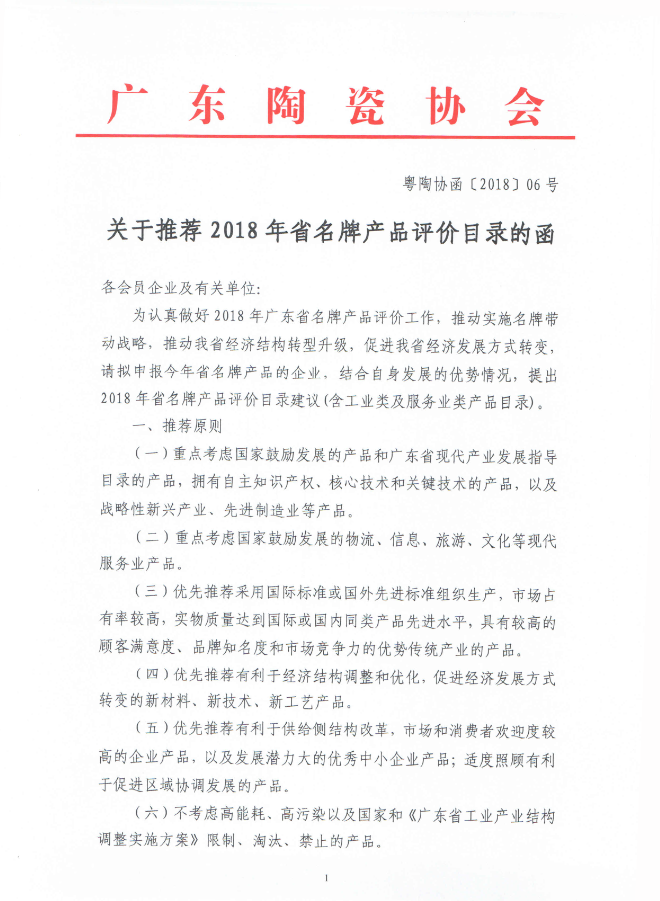 关于推荐2018年省名牌产品评价目录的函