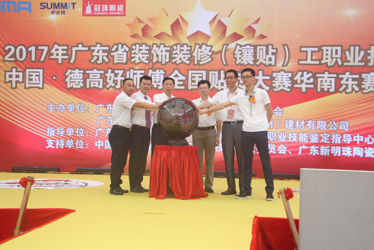 广东省装饰装修(镶贴)工职业技能竞赛是一次行业性技能比武练兵活动。本次比赛由广东省建筑材料行业协会、广东陶瓷协会、广东省建材行业工会联合会和德高(广州)建材有限公司联合主办,并被列入广东省职业技能竞赛二类比赛,得到了广东省人力资源和社会保障厅、广东省职业技能鉴定指导中心协助指导,并获得广东新明珠集团有限公司、中国陶瓷工业协会瓷砖粘贴技术专业委员会的大力支持。
