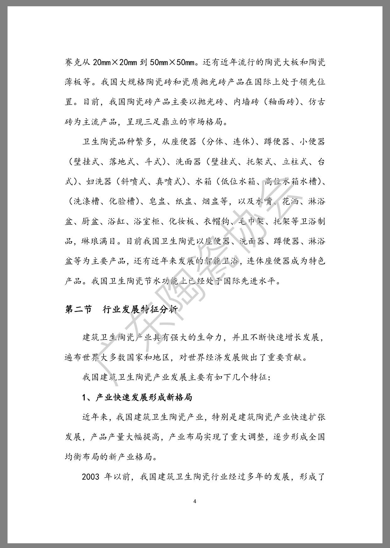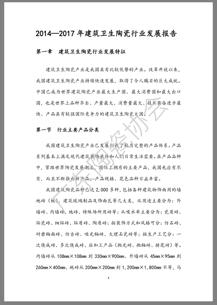 建筑卫生陶瓷产业是我国具有比较优势的产业。改革开放以来,我国建筑卫生陶瓷产业持续快速发展,取得了令人瞩目的巨大成就。中国已成为世界建筑陶瓷产业最大生产国、最大消费国和最大出口国,也是世界上品种齐全、产量最大、消费量最大、技术装备进步最快、产品具有较强国际竞争力的建筑卫生陶瓷大国。