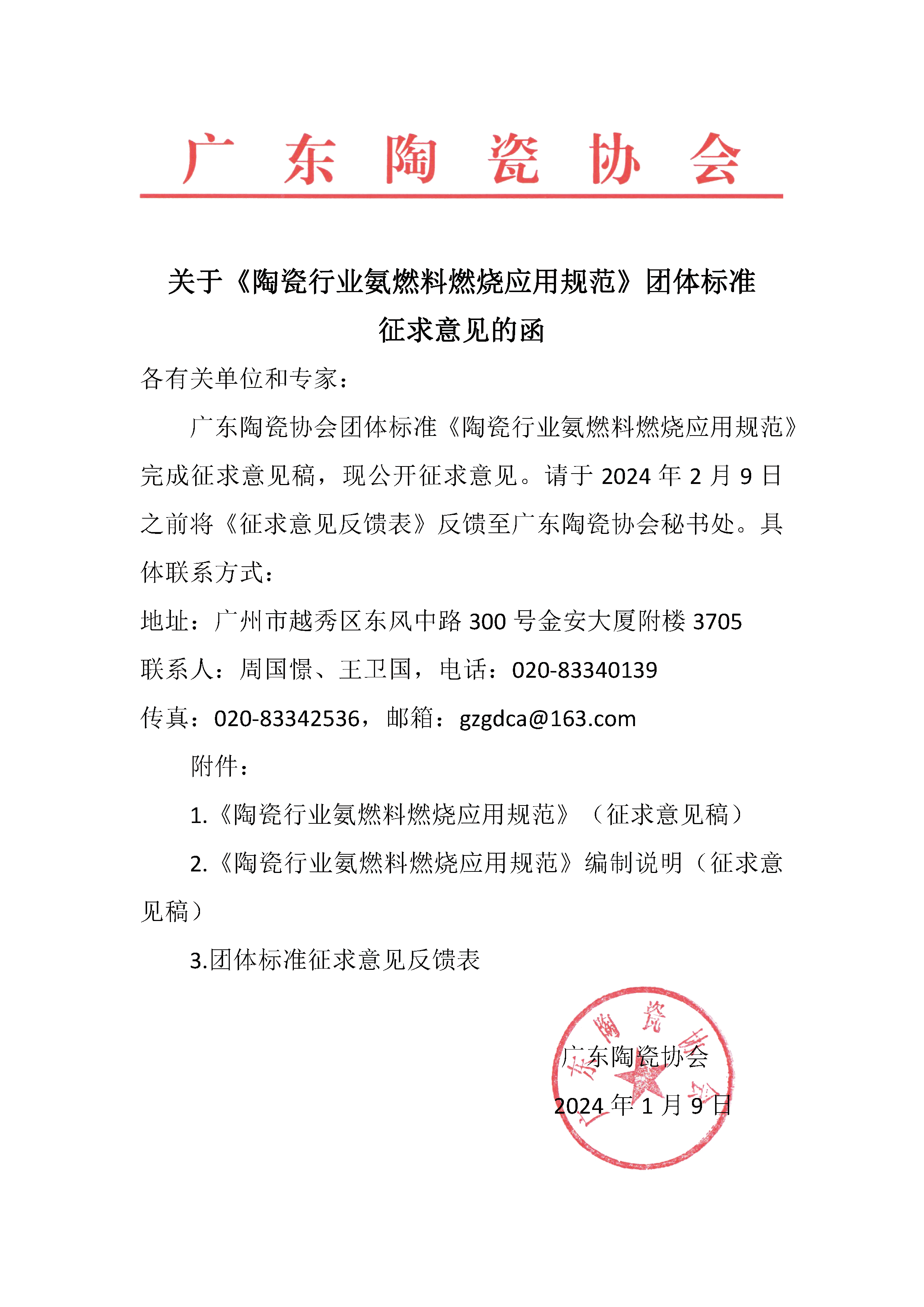 关于《陶瓷行业辊道窑氨燃料应用规范》征求意见的函