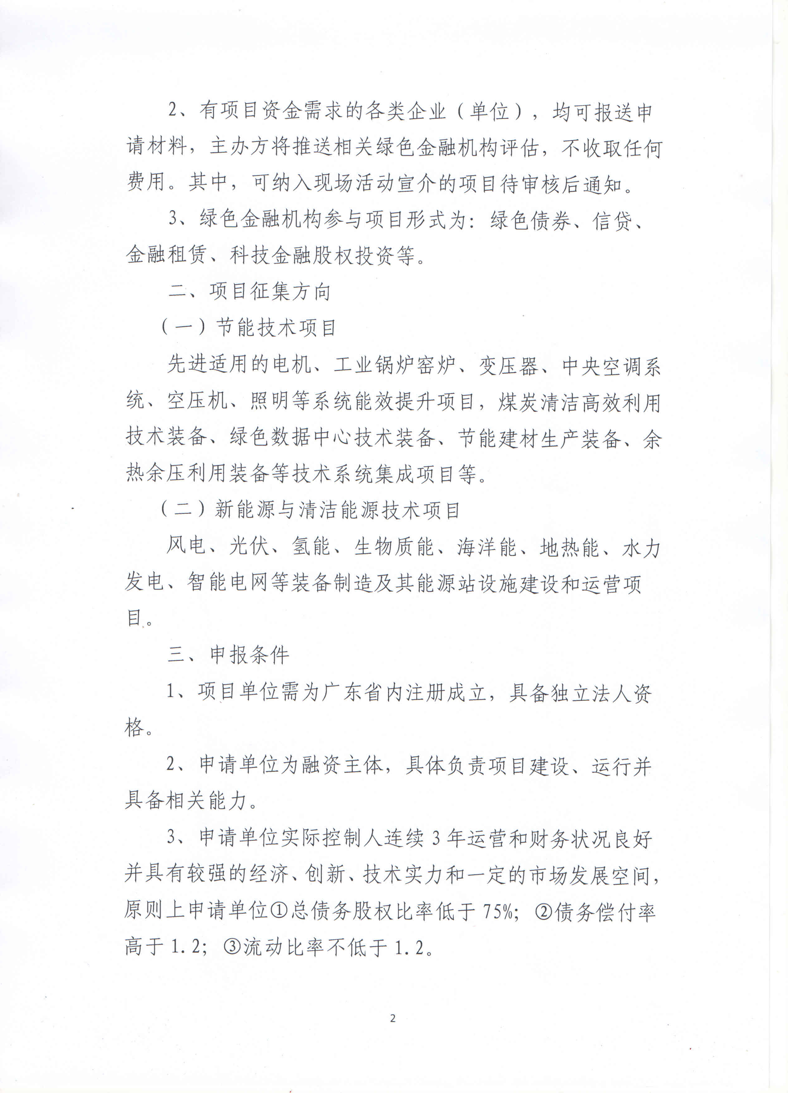 2、有项目资金需求的各类企业(单位),均可报送申请材料,主办方将推送相关绿色金融机构评估,不收取任何费用。其中,可纳入现场活动宣介的项目待审核后通知。